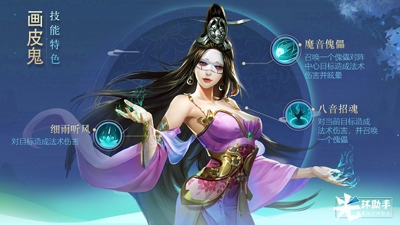 画皮鬼定位为【乾属性】的法术刺客,能不断召唤出骷髅鬼怪助阵,吸收火力并持续造成伤害。