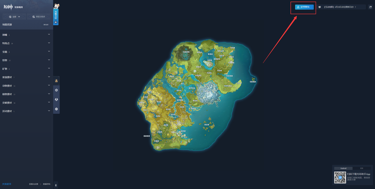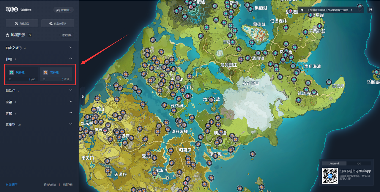 3.地图里的风瞳及岩瞳已优化为公测版点位,刷新地图页面即可查看!