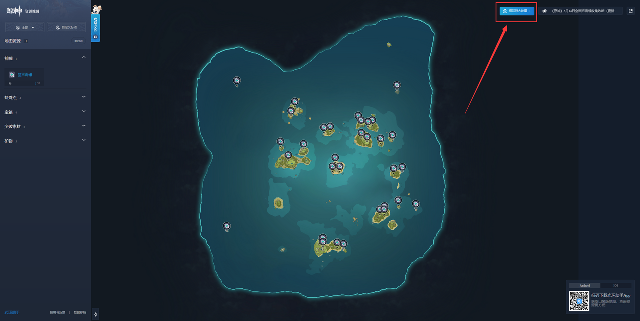 1.岩神瞳点位新增了视频探索攻略,步骤详细清楚,正式服131个岩瞳点位已更新完毕。刷新地图页面即可查看!