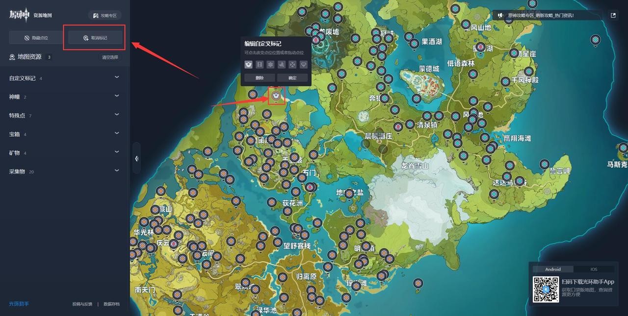 在资源选择面板中,神瞳资源面板新增了点位总数量及已标记数量,已收集多少神瞳一目了然~