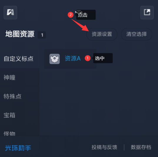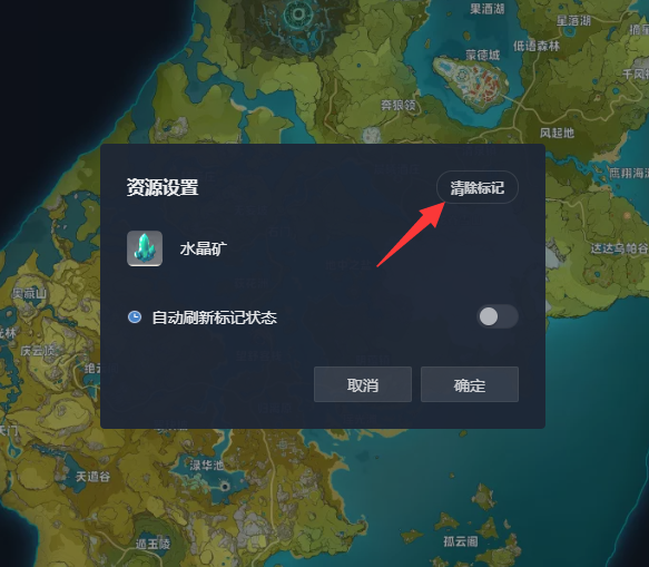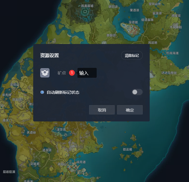为了避免误触增加了个确认栏,点确认便可清除该资源下所有点位的标记,对于开小号,多号的玩家十分实用。