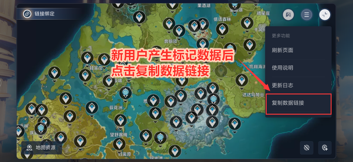 新用户:在悬浮窗地图上产生过标记行为后,点击“复制数据链接”再进行链接绑定即可。