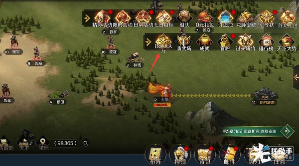 比如我要攻打第一个boss,点击地点剑阁后,将直接到达该城池,boss一般会出现在城池附近,左右拖动地图即可找到。点击boss可进行队伍创建,主公需先选择您的上阵队伍,然后可选择发布世界邀请,邀请其他小伙伴一起战斗,或直接开战,一个人进行战斗。
