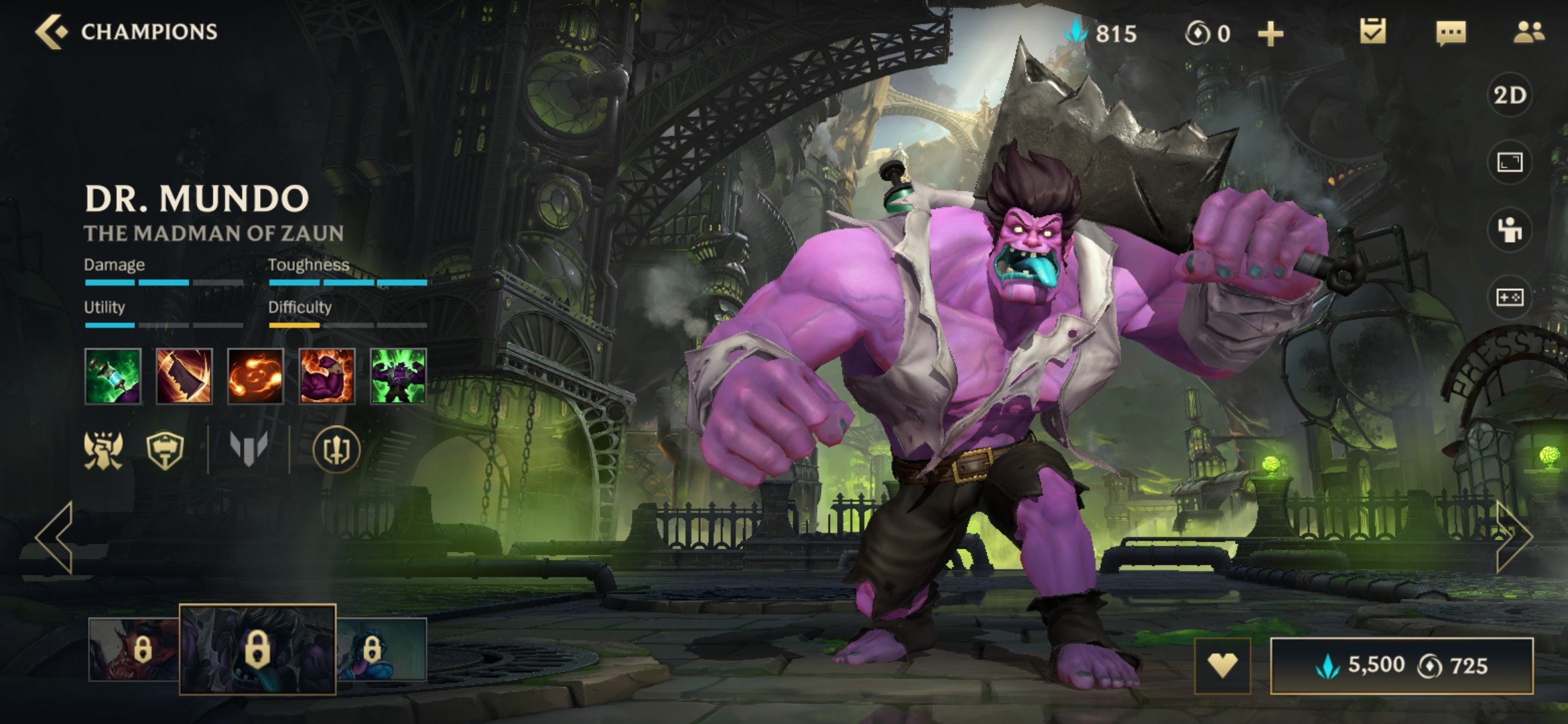 蒙多医生根据自身失去生命获得额外60物理攻击,此外他下一次的普攻会用头槌击目标并造成3%最大生命值额外伤害。蒙多医生受到魔法伤害或消耗技能所需生命时会增加自身魔法防御3%,最多15%。