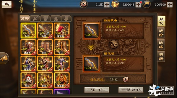 再好的武将也需要佩戴神兵利器,因此装备养成是提升战力必不可少的一环。玩家可以通过强化,进阶,洗练,合成等操作来快速提升战力!
