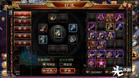 新征战装备进阶包括:合成、强化、镶嵌、铸魂、洗炼。