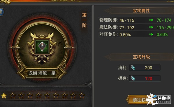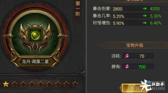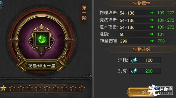 另外,宝物还拥有套装加成属性,即各类宝物达到相同等级可额外提高角色攻击力。