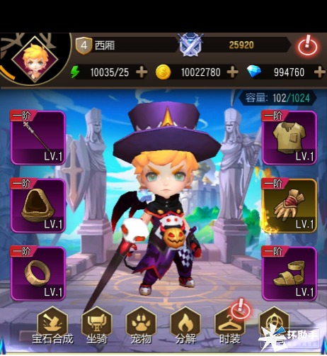 装备可以进行升级、分解以及宝石镶嵌。冒险者关卡掉落的装备消耗金币即可升级。点击人物接口分解按钮进入分解接口分解装备,分解后获得一定数量的金币和精铁。精铁主要用于装备的重铸,重铸后基础属性和附加属性都有小幅度提升,多次重铸能够突破当前质量,升级到下一质量。但要注意的是精铁每日的分解上限,达到上限后只能获得金币。
