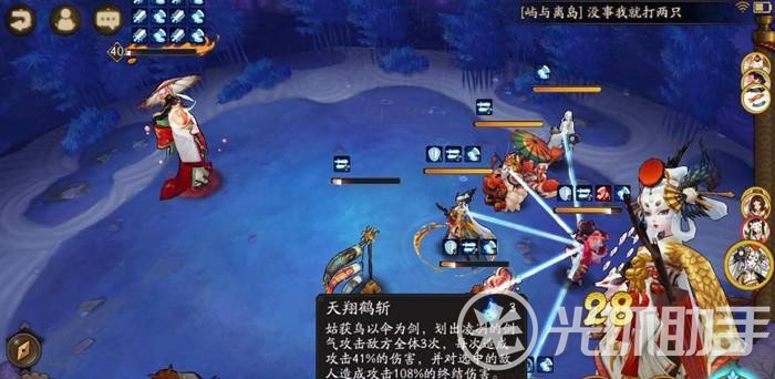 姑获鸟的技能一是以肉眼无法捕获的速度迅速拔出藏在腰间的伞砍向一名敌人,并造成攻击80%的伤害,无视目标20%的防御;技能二是队友使用普通攻击的时候,姑获鸟将有30%的机率使出普通攻击·伞剑帮助队友追击敌人;技能三是以伞为剑,划出凌冽的剑气攻击敌方全体三次,每一次造成攻击33%的伤害,并对单独选中的敌人造成攻击88%的终结伤害。