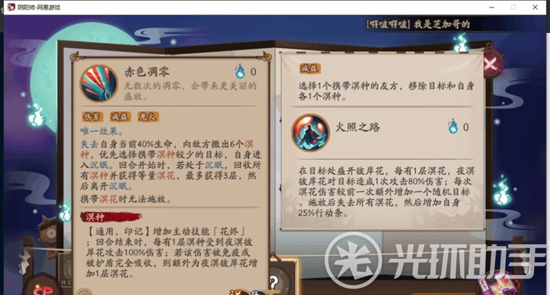 而SP彼岸花的到来则彻底改变了这一切,SP彼岸花的技能可以让自身开局进入无敌状态直到自身回合开始,完全可以无视SP大岳丸和蟹姬的高额输出,而到了SP彼岸花的回合,则可以通过溟花效果直接反杀对面输出式神。
