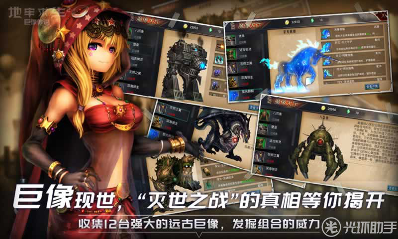 每次探险城主需要指派四名冒险者,以及搭载一台战争巨像。然而在六大职业体系下,冒险者们掌握了几十种技能,巨像提供的能力也都大相径庭,怎么样的搭配能够在风格迥异的冒险迷宫中走到最远,需要城主的努力尝试与用心搭配。在战斗过程中,没有所谓最强的技能,只有适当的时机下最合适的技能,只有这样冒险者们才能用最小的代价战胜最多的敌人。 当然了,Roguelike的世界里,强力的随机装备可少不了,极品套装不仅带来数值上的提升,还能赋予英雄额外的能力。
