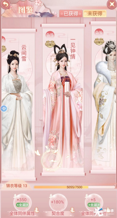 点击左侧的图鉴可以查看当前所有的套装服饰,点击套装可以进一步查看套装包含的部件以及加成属性,方便玩家在锦衣商铺更快地找到自己需要的服饰。