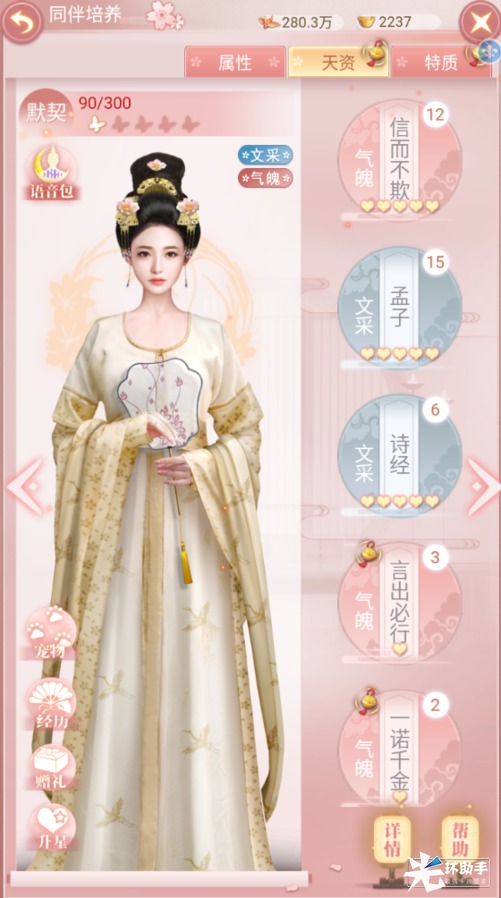 使用强化卷轴与天资经验升级皆可对同伴天资进行提升,使用特质经验可以升级同伴特质,将同伴派去藏书阁学习就可以获得特质经验啦!
