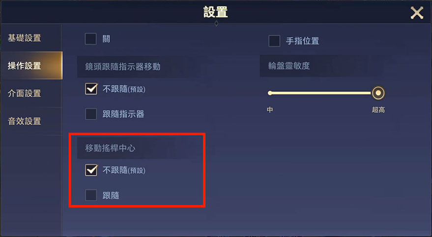 在新版本中,我们对于左摇杆新增了一个设置,就是左摇杆中心可以随手指的移动而产生连续的跟随,可以提升部分挑战者移动操控体验。