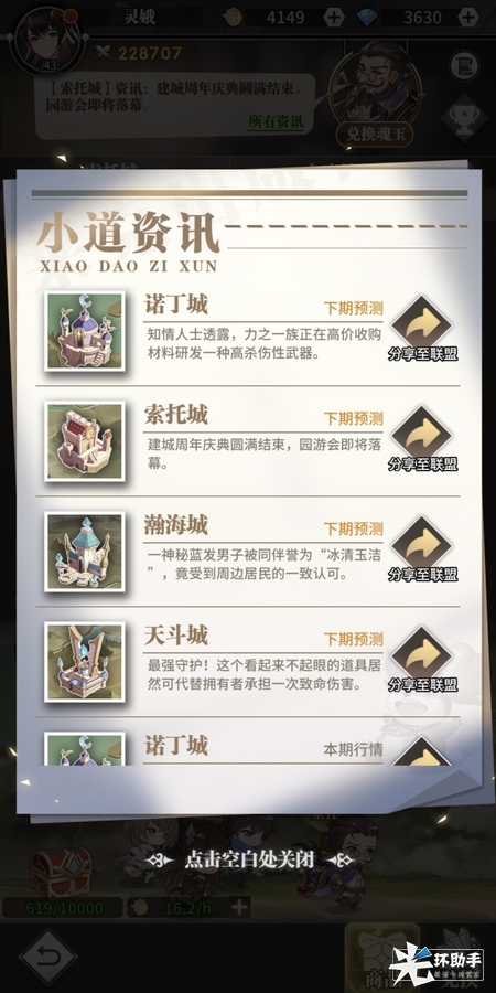 行商前请注意查看小道资讯,小道资讯汇集着四大商会的下期商品行情预测,由于商品数量非常多,因此记得分享至联盟频道已查看详细价格波动。玩家的目标就是在上一期准确预判并购入商品,然后前往指定商会,这样就能获得高额利润啦!