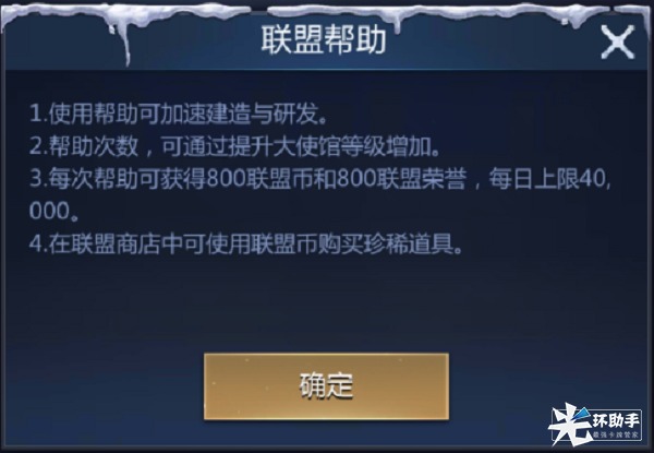 任何需要花费时间的行为(升级建筑、研究),都可以让盟友帮你加速,同时帮助别人还可以获取联盟币换区大量的道具,包括vip经验等高价值的道具;