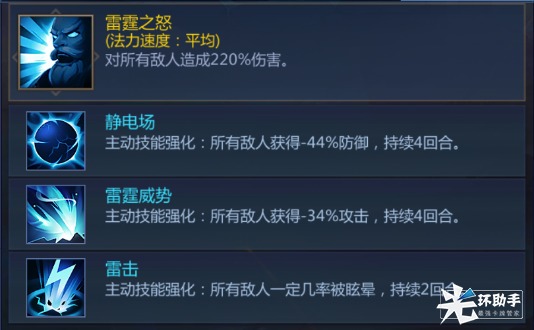 2、以英雄“宙斯”的为例:技能效果为群体输出,同时提升英雄等级可以增加技能效果;