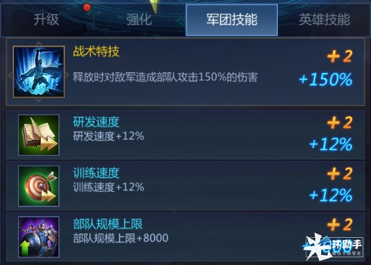 主要是加速建造、采集、造兵、科研等等; 内政加成无需上阵技能即可生效,且属性可叠加。当英雄升级至131级,就能解锁满4个技能。