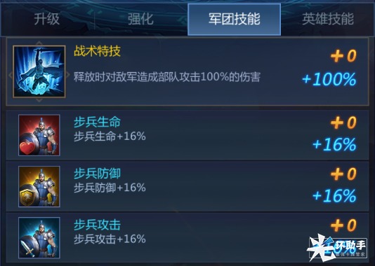 英雄又区分战斗型和内政型,主要区别是军团技能加成: