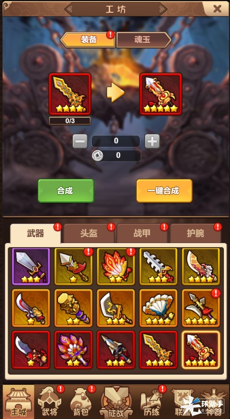 在工坊里面可以将装备进行合成晋升