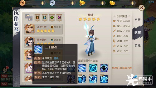 推荐理由:奉剑是玩家们初期心中绝对的“女神”,有颜值又能打出四段单秒,可以说是相当暴力的输出型伙伴了,初期就能够依靠“三千雷动”技能输出成吨的伤害,是玩家们过渡时期最喜爱使用的伙伴,而且招募奉剑之后就能够解开两道命缘,获取超多属性收益。无论是颜值党还是实力党,奉剑这个伙伴都是各位玩家必须入手的选择。虽然后期输出可能会乏力,但是用于前期的过渡时期的单秒伙伴,还是相当出色给力的!