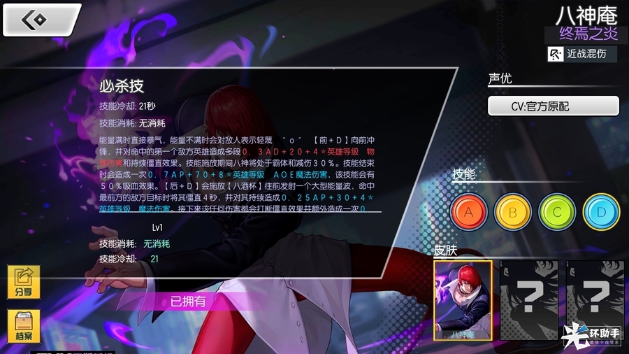 以上就是关于全明星激斗八神庵技能推荐以及八神庵技能携带推荐的所有内容了,希望对各位玩家有所帮助!