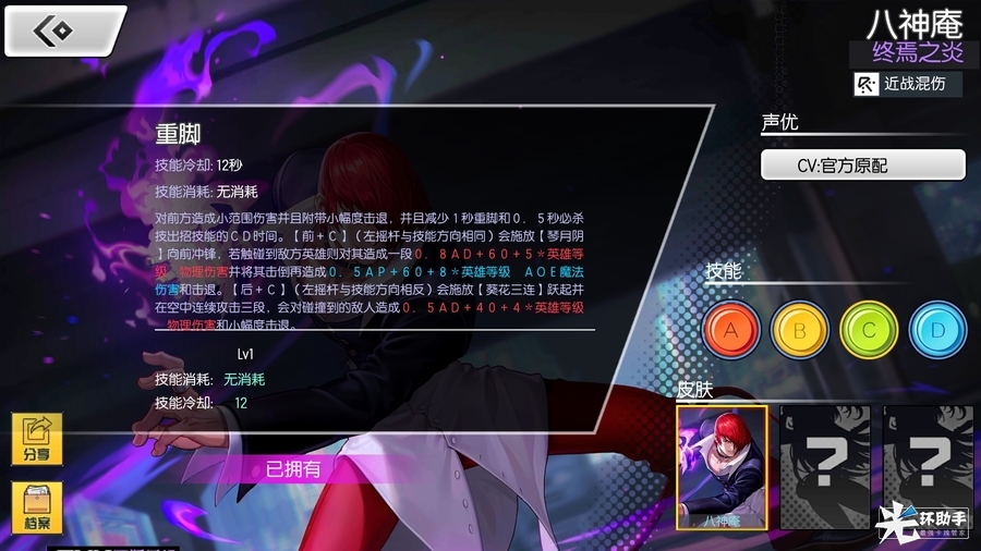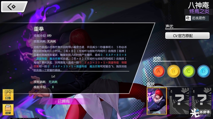 全明星激斗里面有许多玩家们熟悉的角色,这不,八神庵就是其中一个。关于全明星激斗八神庵技能推荐以及八神庵技能携带推荐就很有必要了,因为全明星激斗比拳皇复杂多了,玩法和技能携带上其实也是很讲究的,下面跟着小编一起来更进一步的了解八神庵吧!