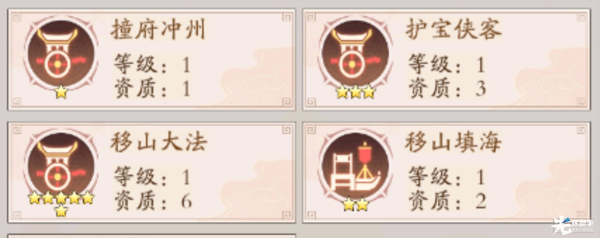 曹操的资质技能星级差距很大,其中移山大法初始时就达到六星级,十分罕见。而护宝侠客这个驿站相关的技能也有三星级。其他的相对较差。但是这些技能都以护镖为主要效果,因此可见曹操在驿站以及码头这两块与货物或者珍贵物品相关的事务中作用巨大。
