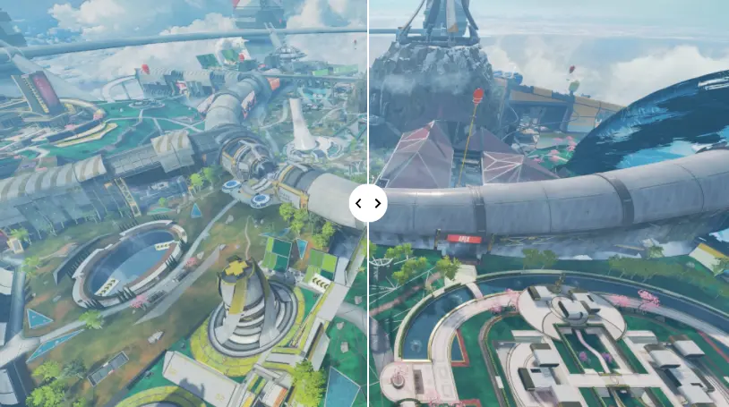交叉路是一片绿油油的开阔草地时,轨道加农炮外的重新部署气球并不成问题。但是伊卡洛斯取代交叉路后,「渔翁得利」的机率也提升了。这是因为伊卡洛斯这个大型区域,无论内外都包含许多阻挡视线地形和咽喉点。在《Apex 英雄》中,确保威胁能够被预测非常重要,所以这个重新部署气球也会被移除。但请记得,那些喜欢降落在离圆圈很远的人,这个区域中有两个三叉戟。