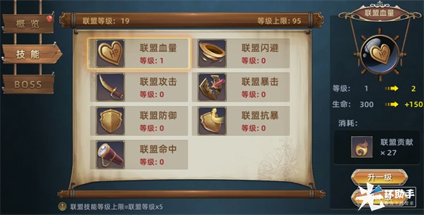 升级联盟技能,可以获得高额属性加成,但是需要消耗一定的联盟贡献。所以,尽可能多的去获取联盟贡献,可以更快的升级联盟技能。
