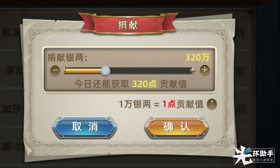 每天在联盟内捐献银两,可以获得相对应的联盟贡献,但每天捐献银两获得的联盟贡献是有限的,每当联盟等级提升时,每天能获得的联盟贡献也会略微提升。