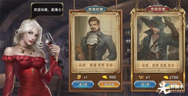 花费一定量的元宝或酒票,可在酒馆招募船员,船员一共分为四个品质,绿色普通、蓝色优秀、紫色完美、金色史诗。品质越高的船员,属性就越好。