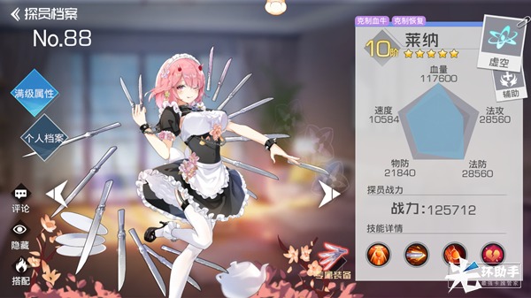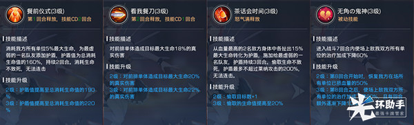 三技能吸取敌方血量最高的两个单位的百分比生命值转化为护盾施加给我方最虚弱的队友。被动技能是双方前七回合的所有单位的治疗加成下降。莱纳是一个护盾辅助,降低双方治疗加成对她没有影响,还能削弱敌方辅助。