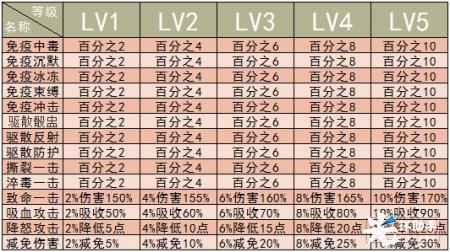 这里伤害有无视防御的百分162的伤害,还有百分之104的伤害,这两个伤害加成堪称恐怖,并且在PVP中触发可以说是决定胜局的被动。伤害减免中规中矩,但是三级前都没用,数据太低。如果五级在大招时候触发可以说对方就输了,有决定胜局的能力。