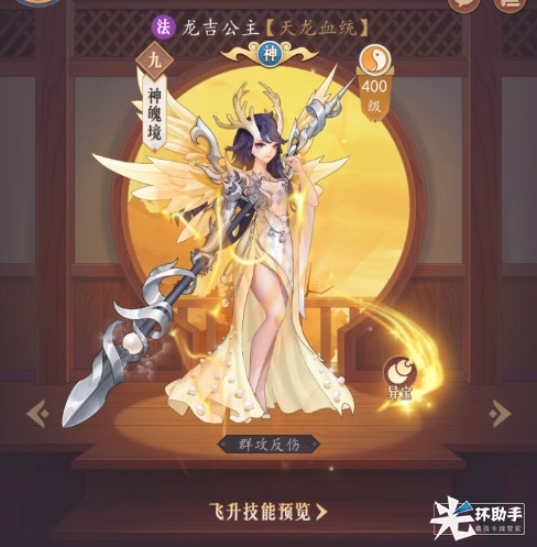 阴、阳系本身具有高额的初始以及成长属性,配合自己的被动可以获得大量的攻击力以及暴击加成。配合法连,三技能“大威天龙”可以对对面全体单位造成大量的伤害。4技能还可以给友方阳系英雄增加10%的伤害,在阵容搭配是配合女娲、雷震子、貂蝉都是十分不错的。