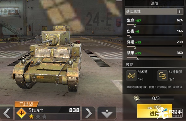 对于喜欢连杀的指挥官,建议你选择【Stuart】,该坦克有快速填弹技能,当子弹用完时,可迅速补充,可以满足击杀多辆坦克的机会,战术链可对友军进行治疗,对敌军造成每秒造成%伤害,配合爆发力强的特点,成为全场亮点