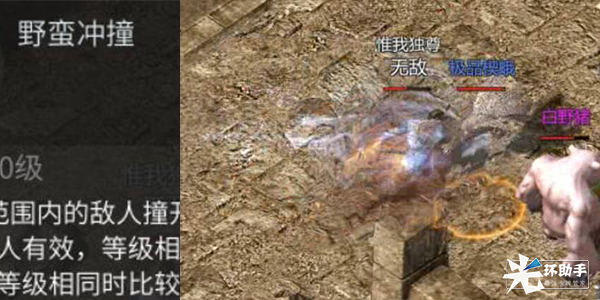野蛮冲撞:战士的灵魂技能。前面可以看到,战士的大多数技能都是自动释放的,减少了战士很多的操作量。而这一切,都是为了让玩家能够将所有的注意力集中在野蛮冲撞的使用上。集冲刺和控制于一身,电光火石之间突进到对手面前将对方麻痹,配合其他技能的爆发伤害,让对手只能扔下手机放弃挣扎。而本身较短的冷却时间更是让战士进退自如。