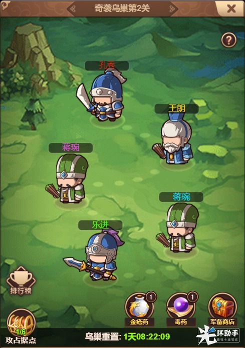 5.钱币奖励PS:小boss随机掉落两倍奖励,大boss必定掉落两次奖励哦~占领据点任重而道远,此玩法还为各位玩家更好的战斗配备了一瓶金疮药和一瓶毒药(金疮药回复己方一名武将50%的血量,毒药直接击败一名boss)