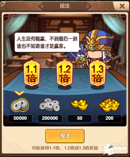 3.投注(可以选择元宝或者钱币,然后就是测试你运气的时间了!)