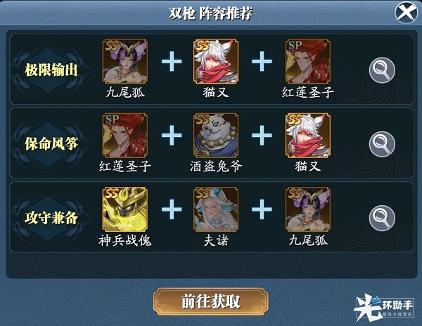 而且各种战灵都有不同的战斗定位,不同的技能体系,当你选择“双枪”职业时,就可以根据个人风格,在以下“极限输出”“保命风筝”和“攻守兼备”等推荐阵容中选择其一。完美配合与辅助输出,一路躺赢不在话下!