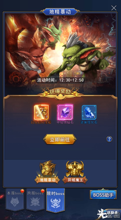(1)地精暴动为限时活动,开启时间为每天12:00-12:30;