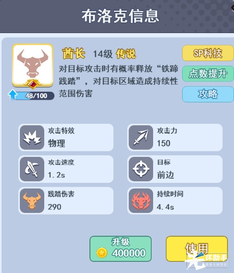 值得一提的是酋长的“铁蹄践踏”是可以叠很多层的,而且点数越高“铁蹄践踏”的伤害就越高,因此酋长是很强的传说布洛克。前期召唤出了几个酋长后,几乎可以让小怪出不了门,后期搭配阿瑞斯等单体伤害很高的布洛克,有非常好的效果。