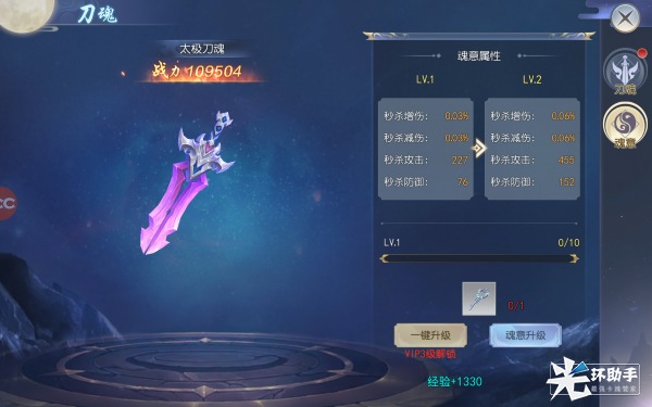升级魂意可增加秒杀增伤、秒杀减伤、秒杀攻击、秒杀防御。