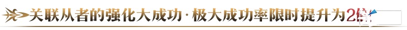 在以下时间段内,强化「Fate/Grand Order THE STAGE -冠位时间神殿 所罗门-」的部分关联从者时,大成功(经验值2倍奖励)·极大成功(经验值3倍奖励)的发生率限时提升为2倍!