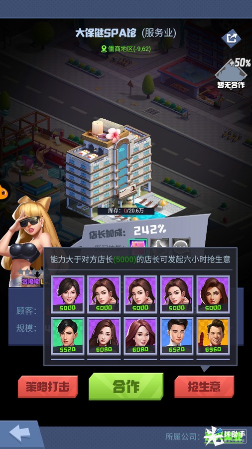 玩家可派遣店铺的店长对相同地图其他玩家的店铺发起抢生意,但需要注意的是!发起抢生意的店长能力值要大于被抢店铺的店长才能发起抢生意哦——