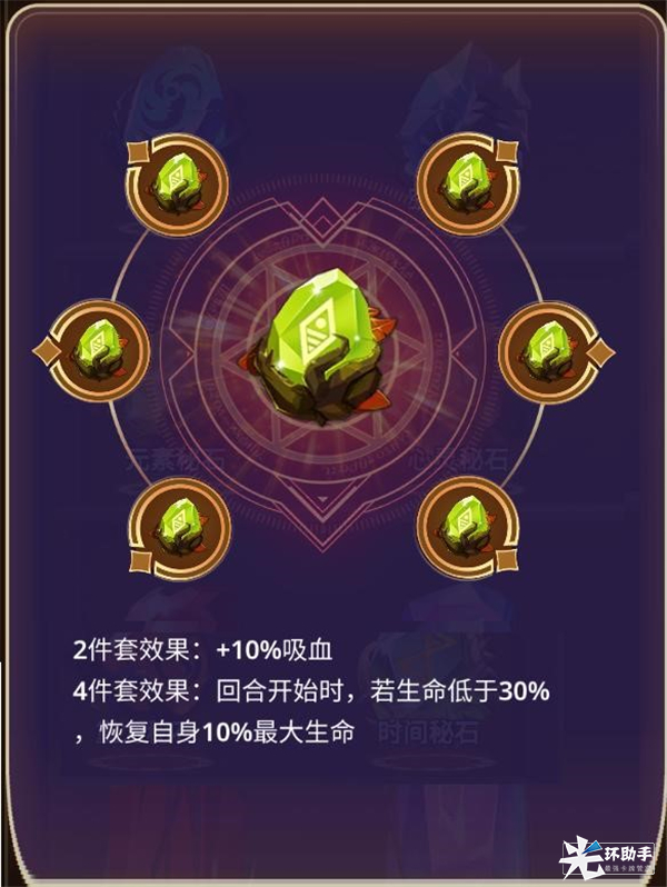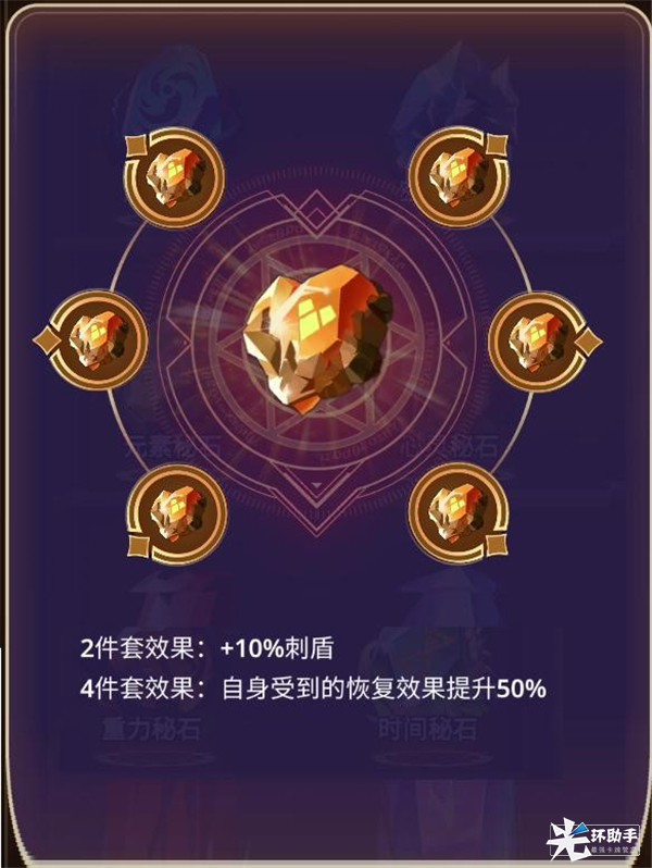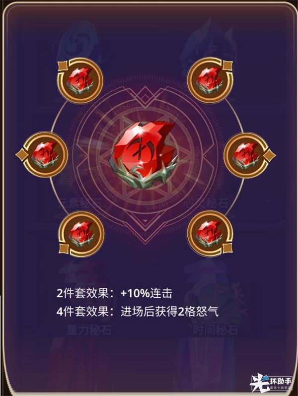 2件套可以带重力秘石,这样她还能再获得20%的秘石生命加成。