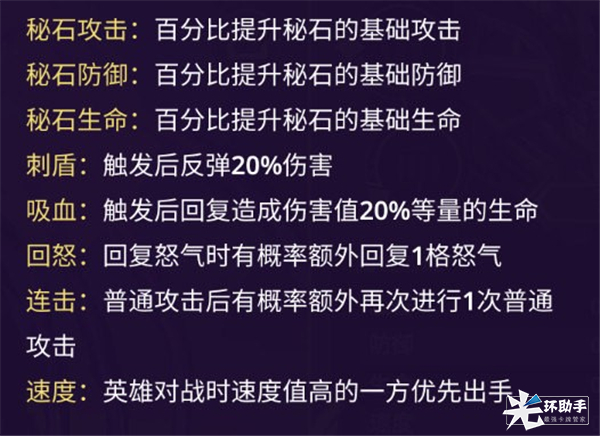 一套合适的秘石可以让战力并不起眼的英雄立于不败之地!同样的,一套不合适的秘石也会让原本战力报表的英雄连连挫败,下面我们就来看看秘石属性的含义吧~