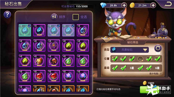 没用的秘石可以在秘石界面中点击出售,进行筛选,出售后可获得相应的金币。