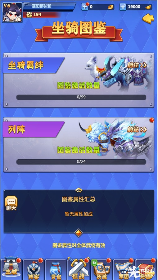 《冲吧三国》坐骑图鉴介绍白纸扇发布于 2021-09-30功能介绍:1、玩法分为坐骑羁绊、坐骑列阵。2、玩家获取坐骑后及可激活对应坐骑图鉴,不同的坐骑组合可激活坐骑羁绊,可获得坐骑羁绊属性及坐骑羁绊技能。3、玩家通过坐骑突破,可激活坐骑列阵属性。玩法攻略:1、主公收集和养成的坐骑能激活一些坐骑图鉴,给武将带来属性加成。不同组合的坐骑激活加成的属性不一样,图鉴激活的数量越多,给武将加成属性越好