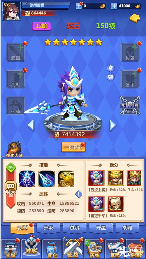 4、武将养成分为武将升级、武将进阶、武将升星。